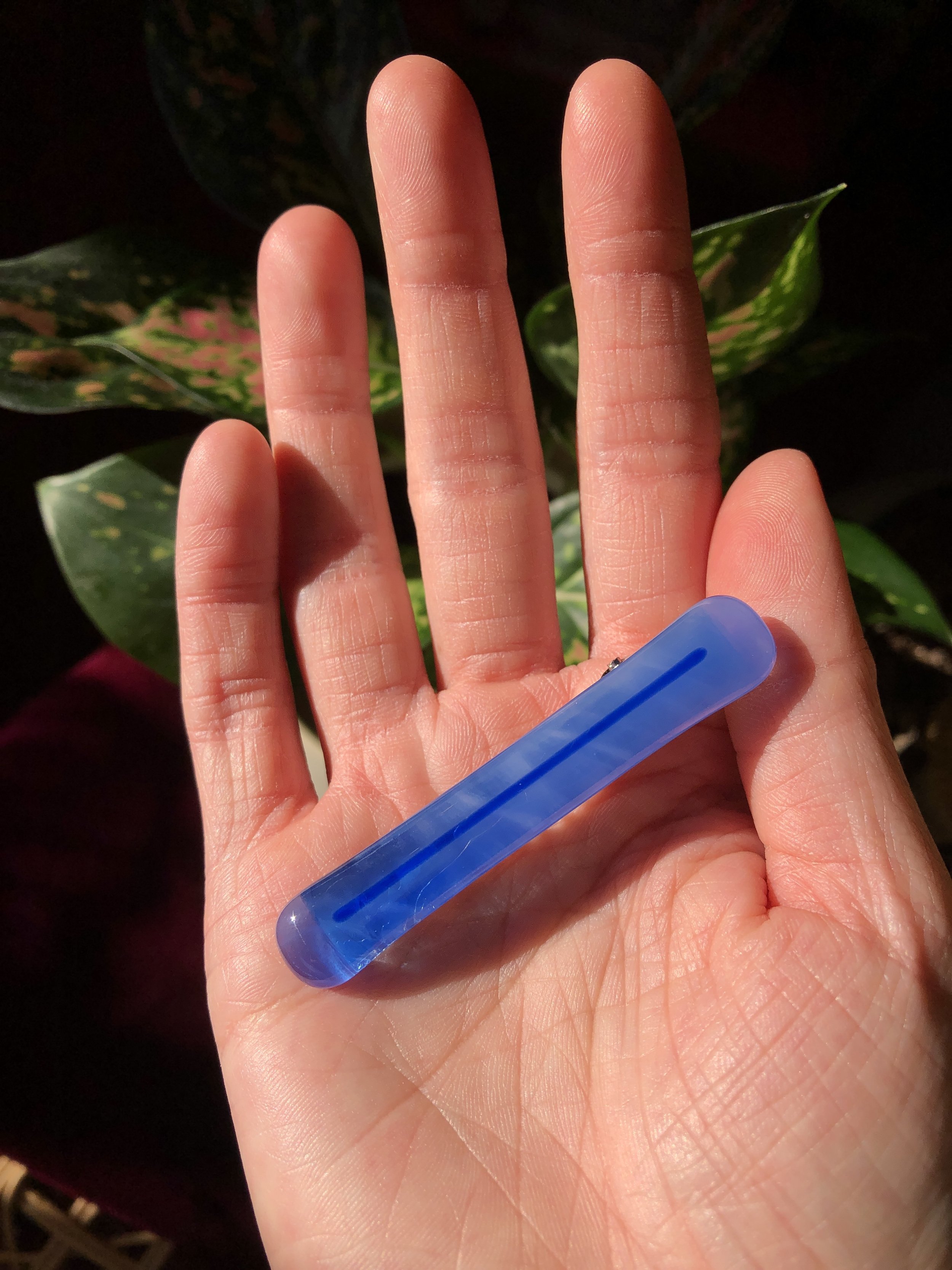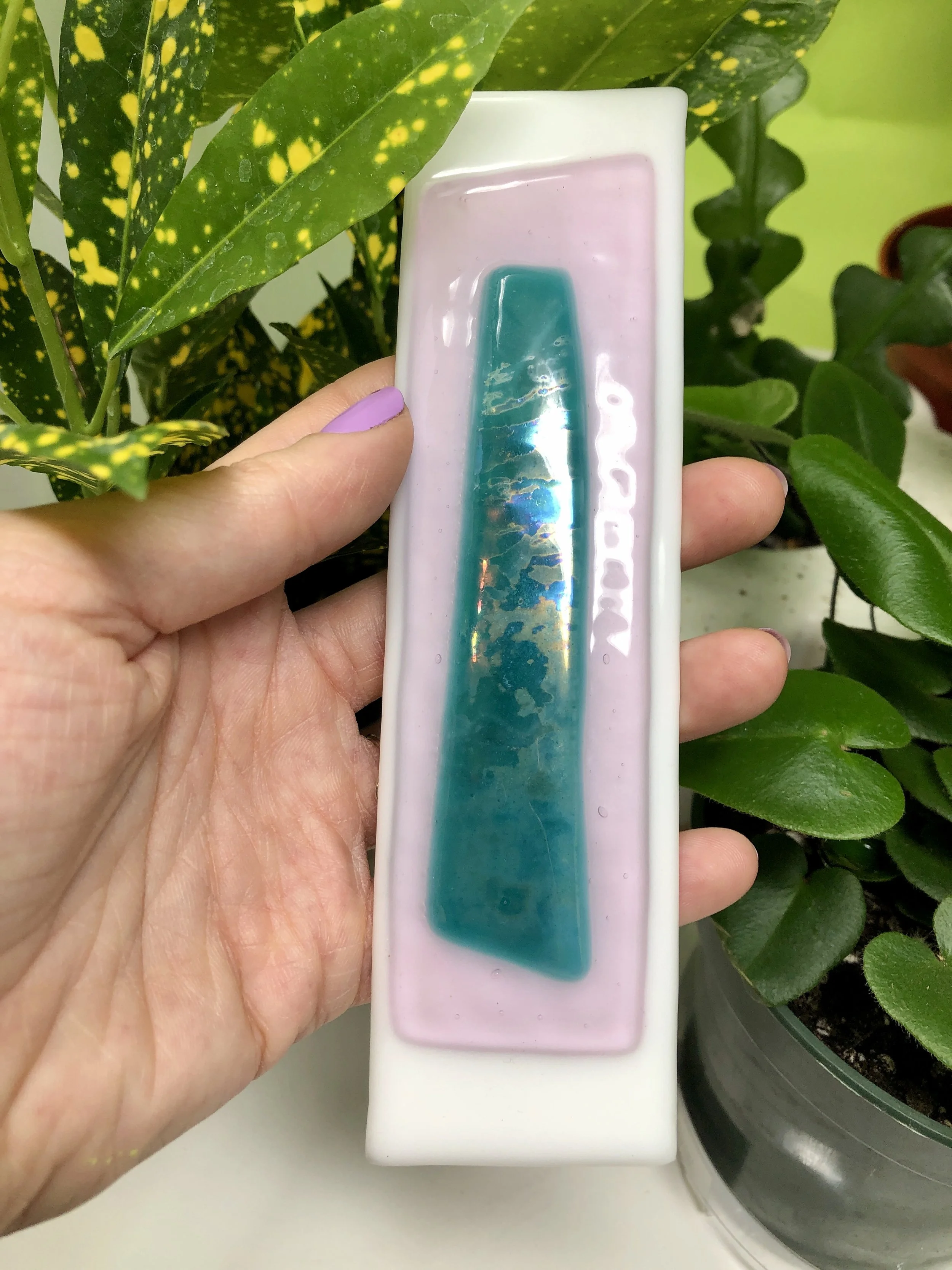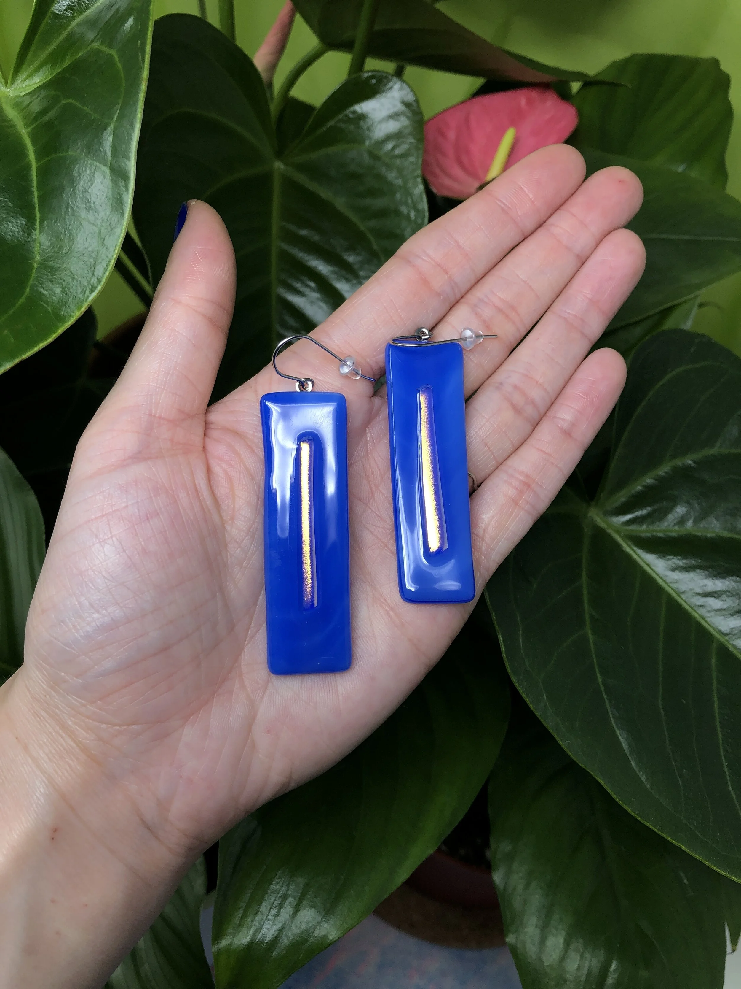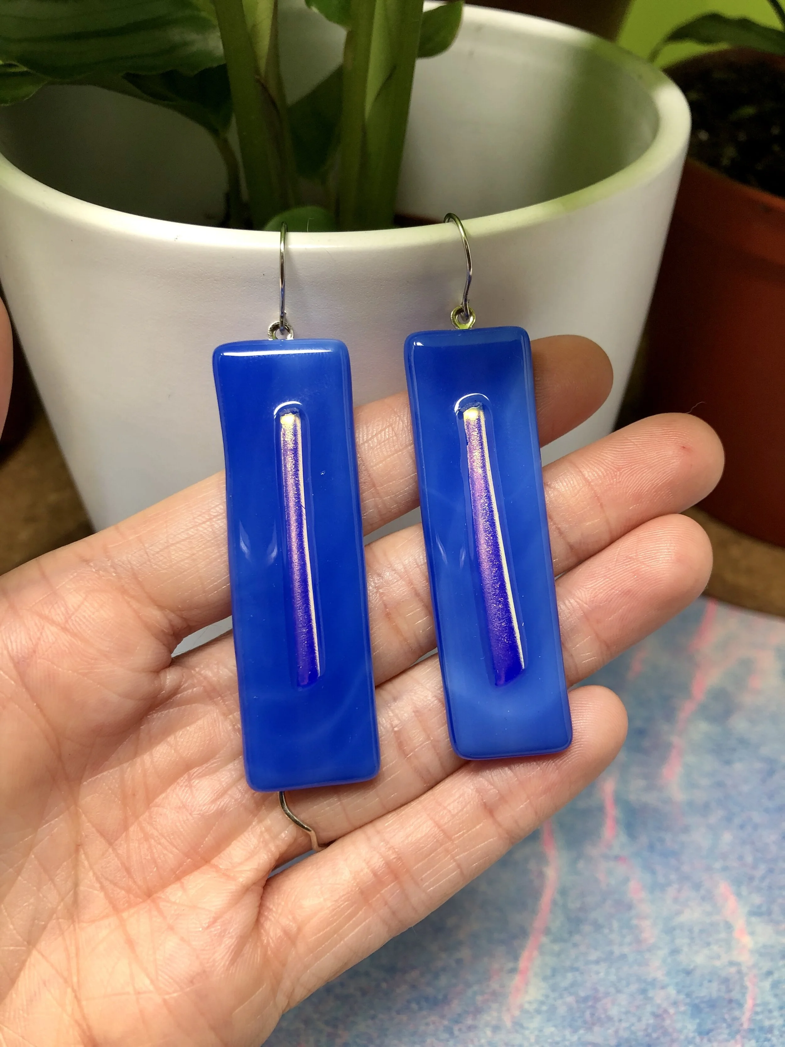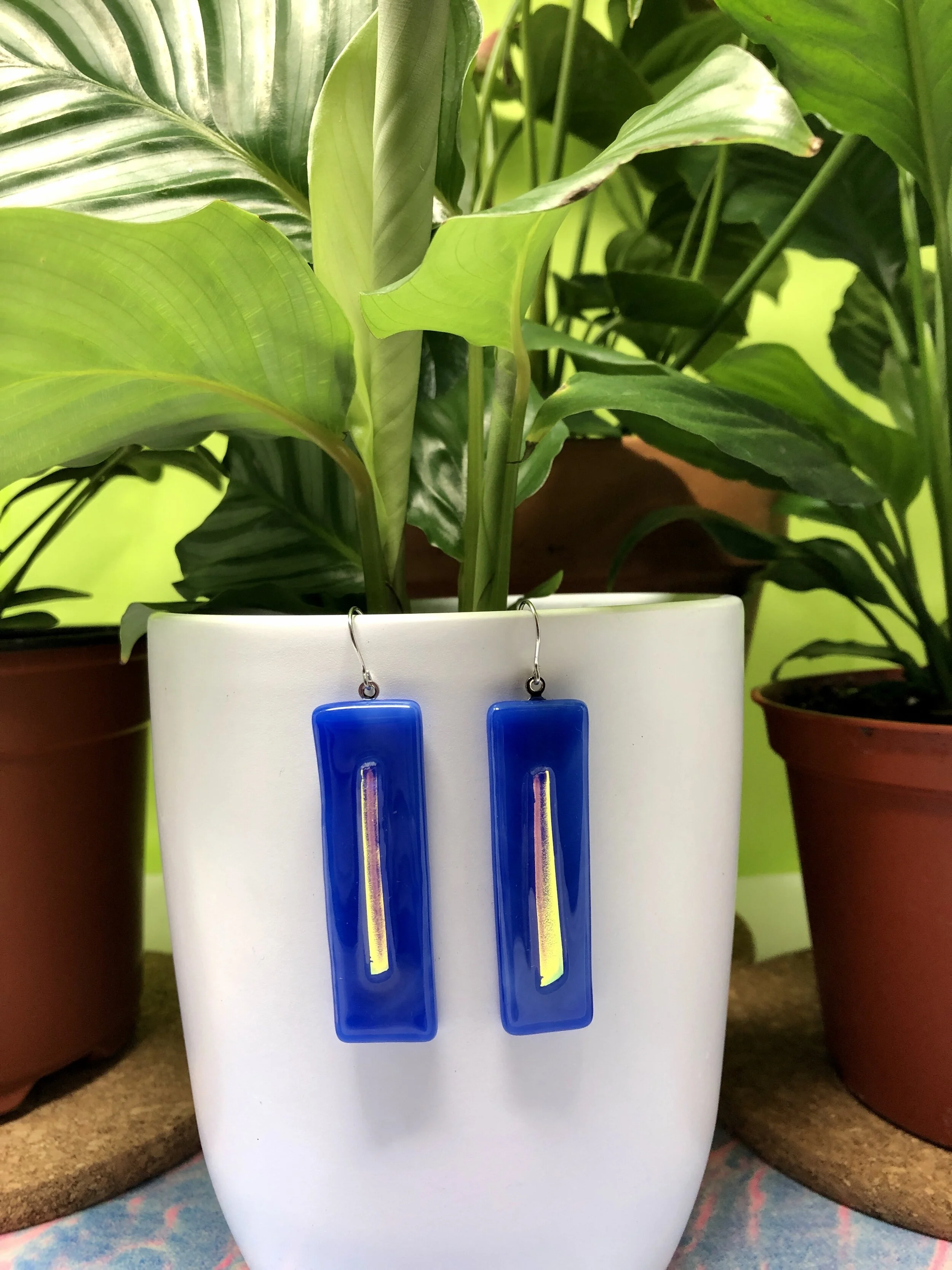 blue glass with classic and inverted iridescent bar details