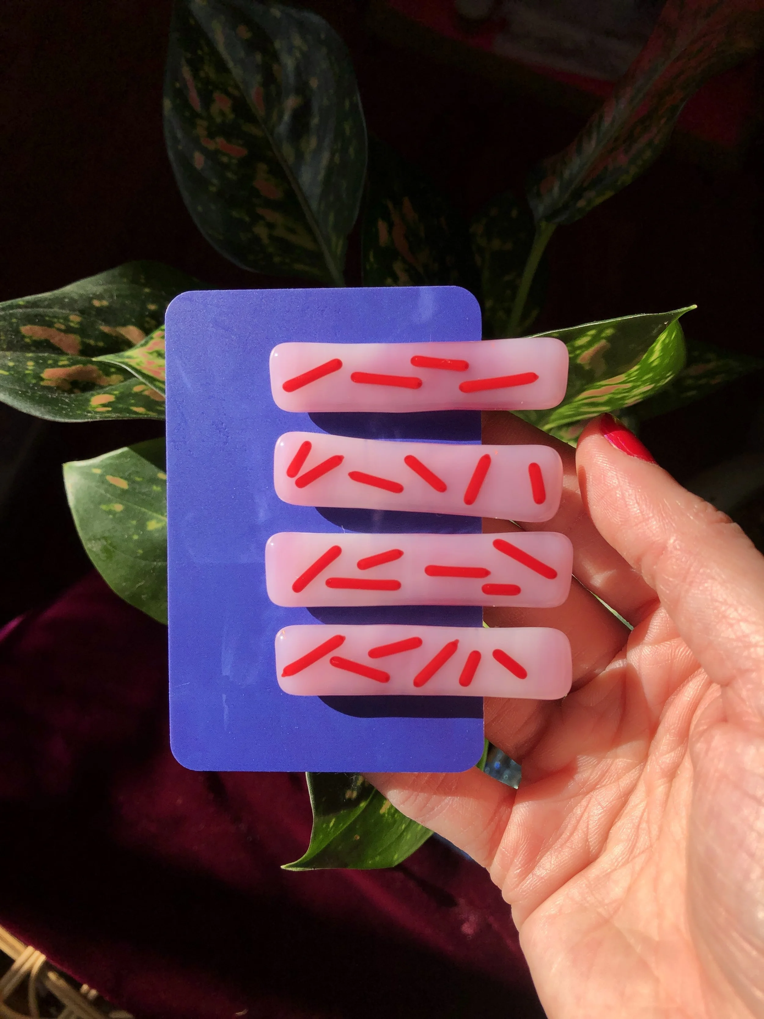 handmade fused glass barrettes