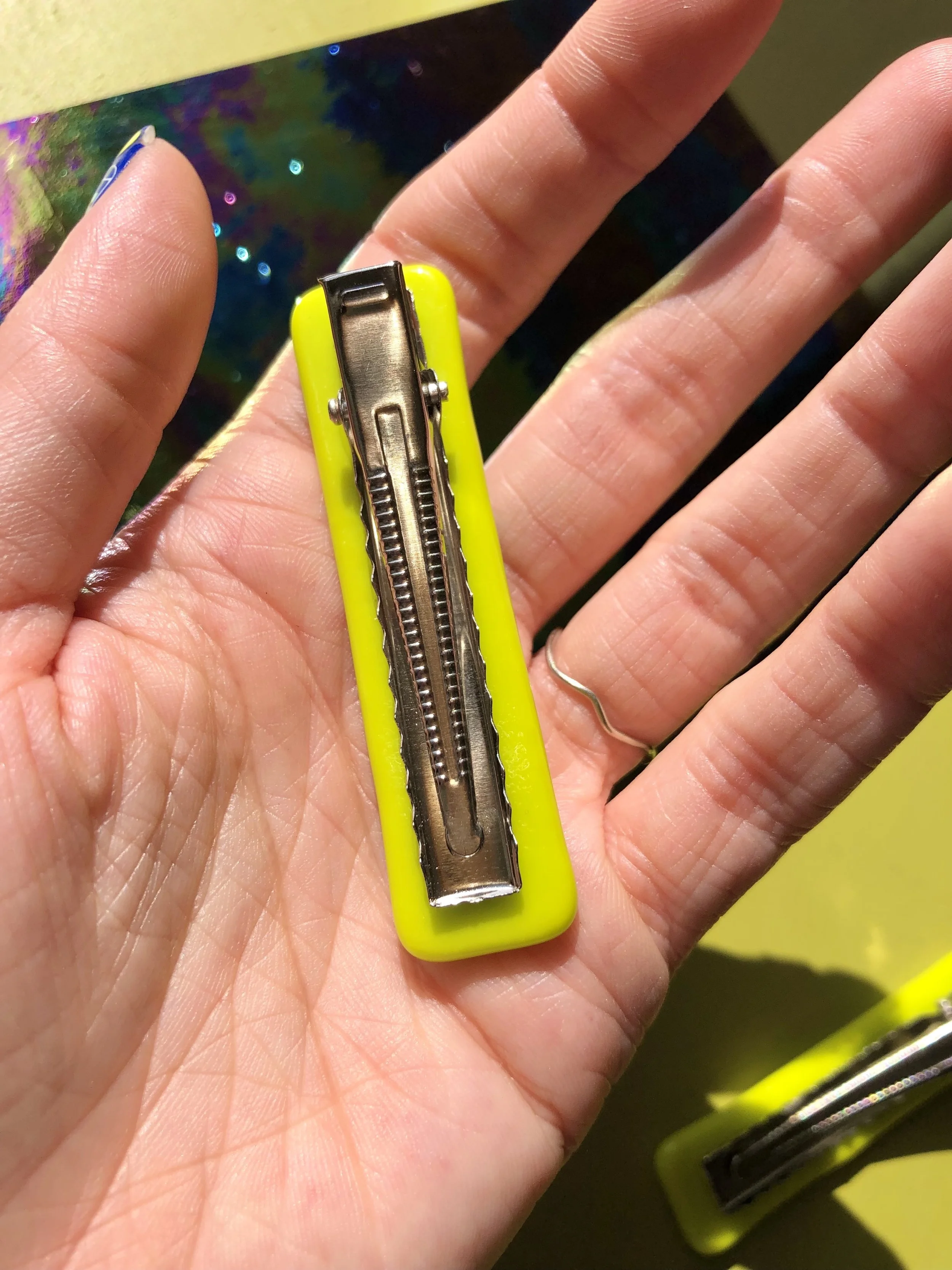 bright and bold, this hair clip is perfect for accenting any colorful look.